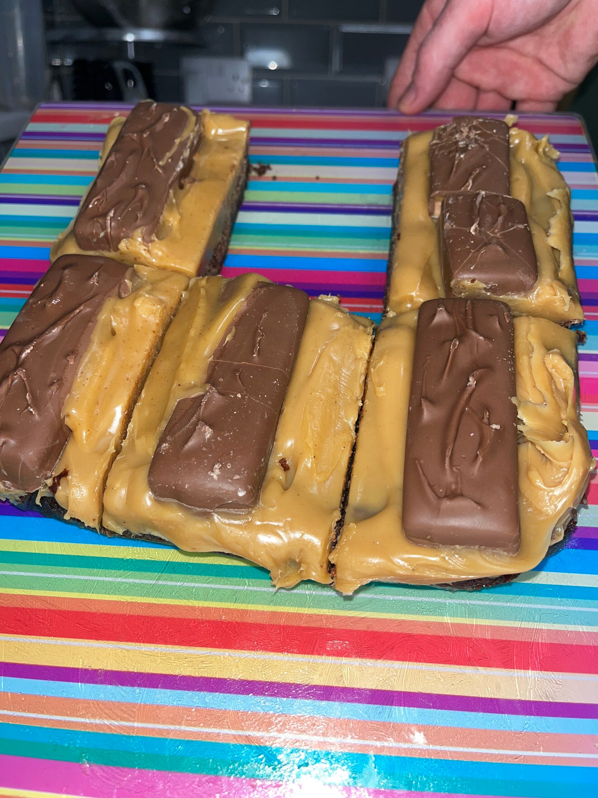 Our gorgeous chocolate brownies topped with a layer of caramel and Mars bars chocolate