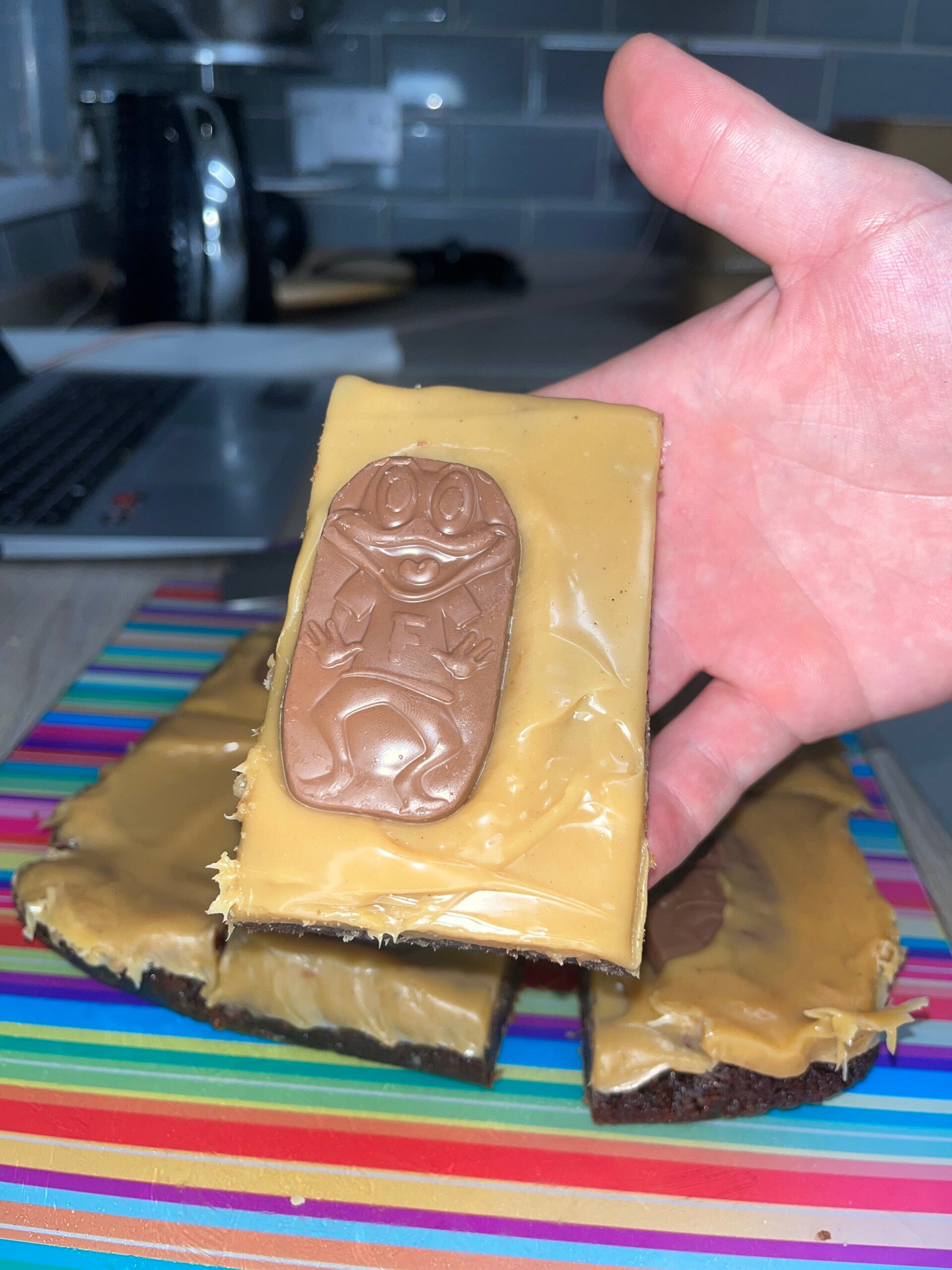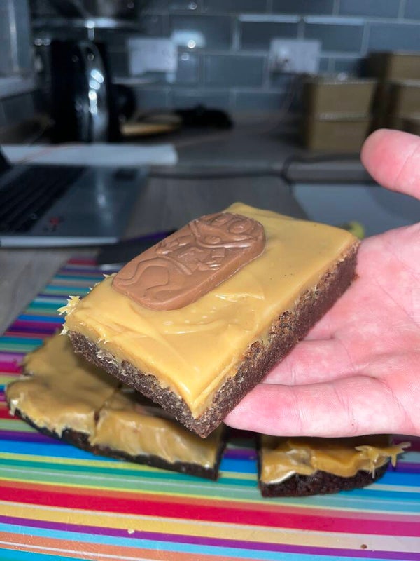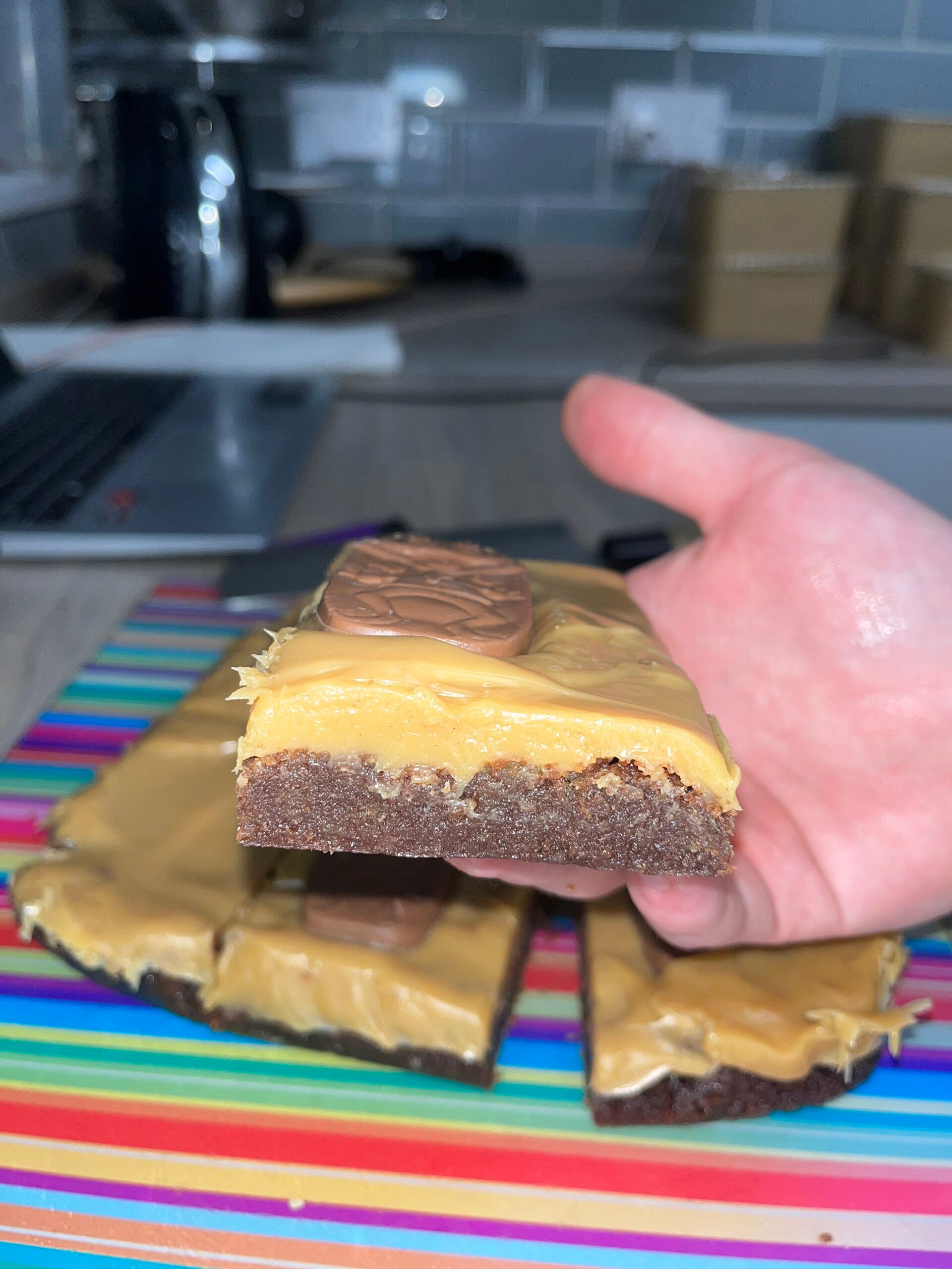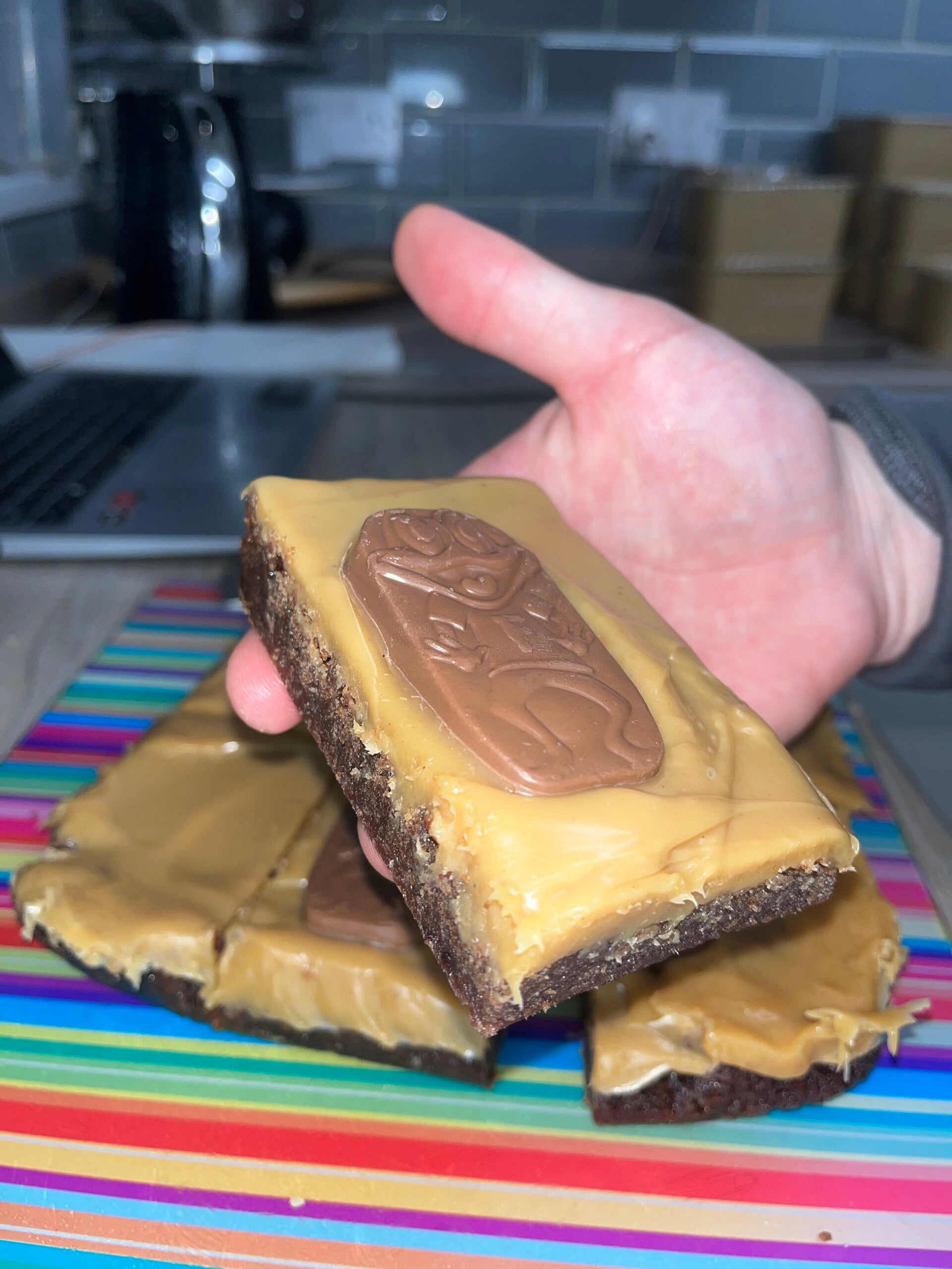 Our gorgeous chocolate brownies topped with a layer of caramel and Rolo chocolate